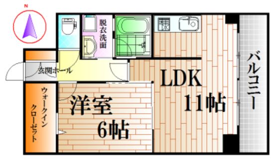 | 築年月 | 2005年2月 | 間取り | 1LDK( 洋室6畳/LDK11畳 ) | 専有面積 | 42.67m2 |