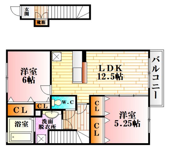 | 築年月 | 2013年2月 | 間取り | 2LDK( LDK12.5畳/洋室6畳/洋室5.25畳 ) | 専有面積 | 62.9m2 |
