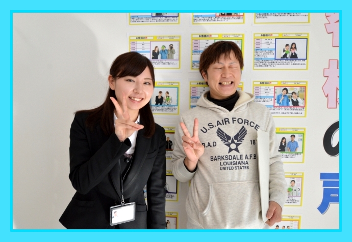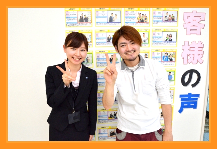 お店の前で部屋情報を見ていたら『資料だけでも出しますよ。よかったら中にどうですか?』から始まりまして、とても親切に条件に合った物件を探してくれました。