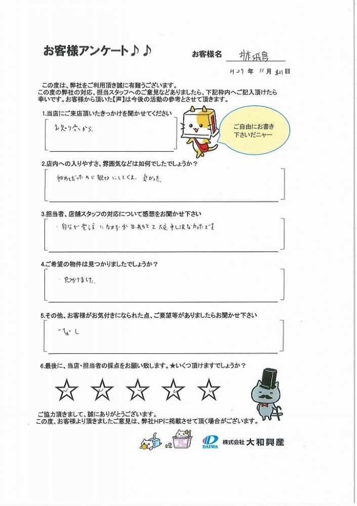 最後に、当店・担当者の採点をお願い致します。★いくつ頂けますでしょうか?