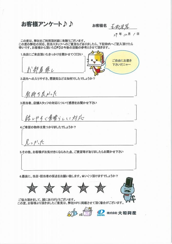 玉城 様 この度は数ある不動産の中から、 大和興産にご来店頂きありがとうございます!! 写真も楽しく撮って頂きありがとうございます☆ 今後も何かございましたらお気軽にご連絡ください♪♪