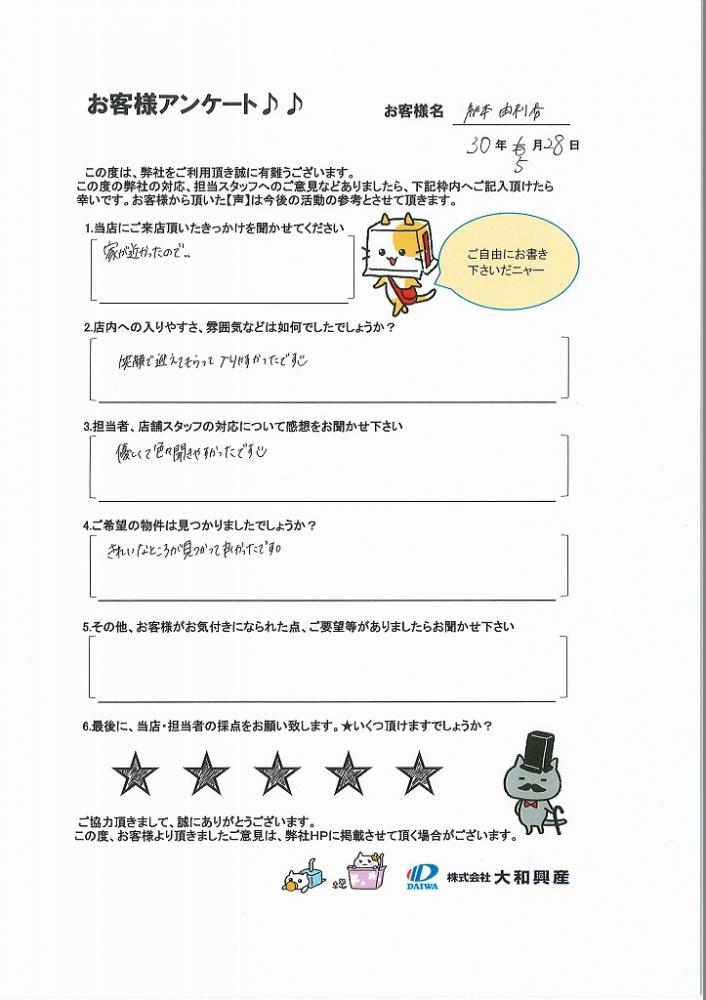 最後に、当店・担当者の採点をお願い致します。★いくつ頂けますでしょうか?