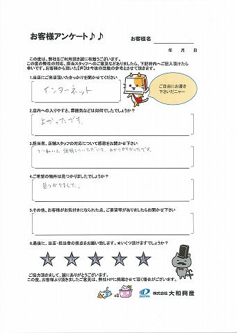 お客様の声 口コミ 評判 茂刈将平大和興産のお客様の声『丁寧に説明して頂いて、分かりやすかった!!』 | 広島の不動産情報なら大和興産