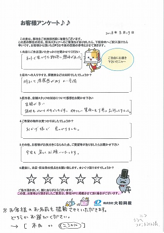最後に、当店・担当者の採点をお願い致します。★いくつ頂けますでしょうか?
